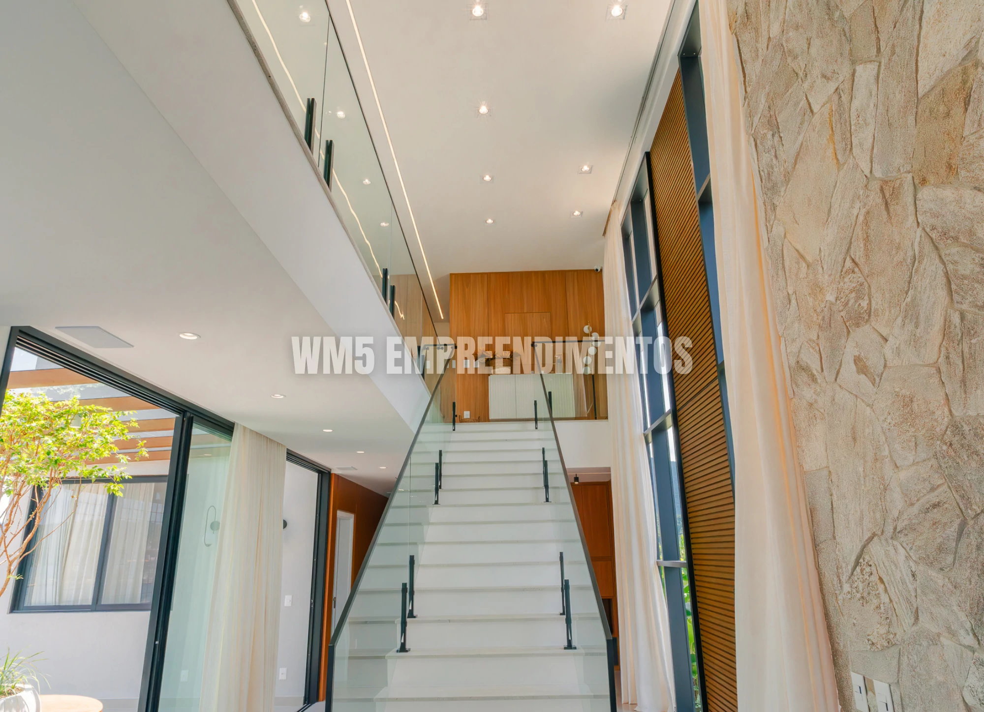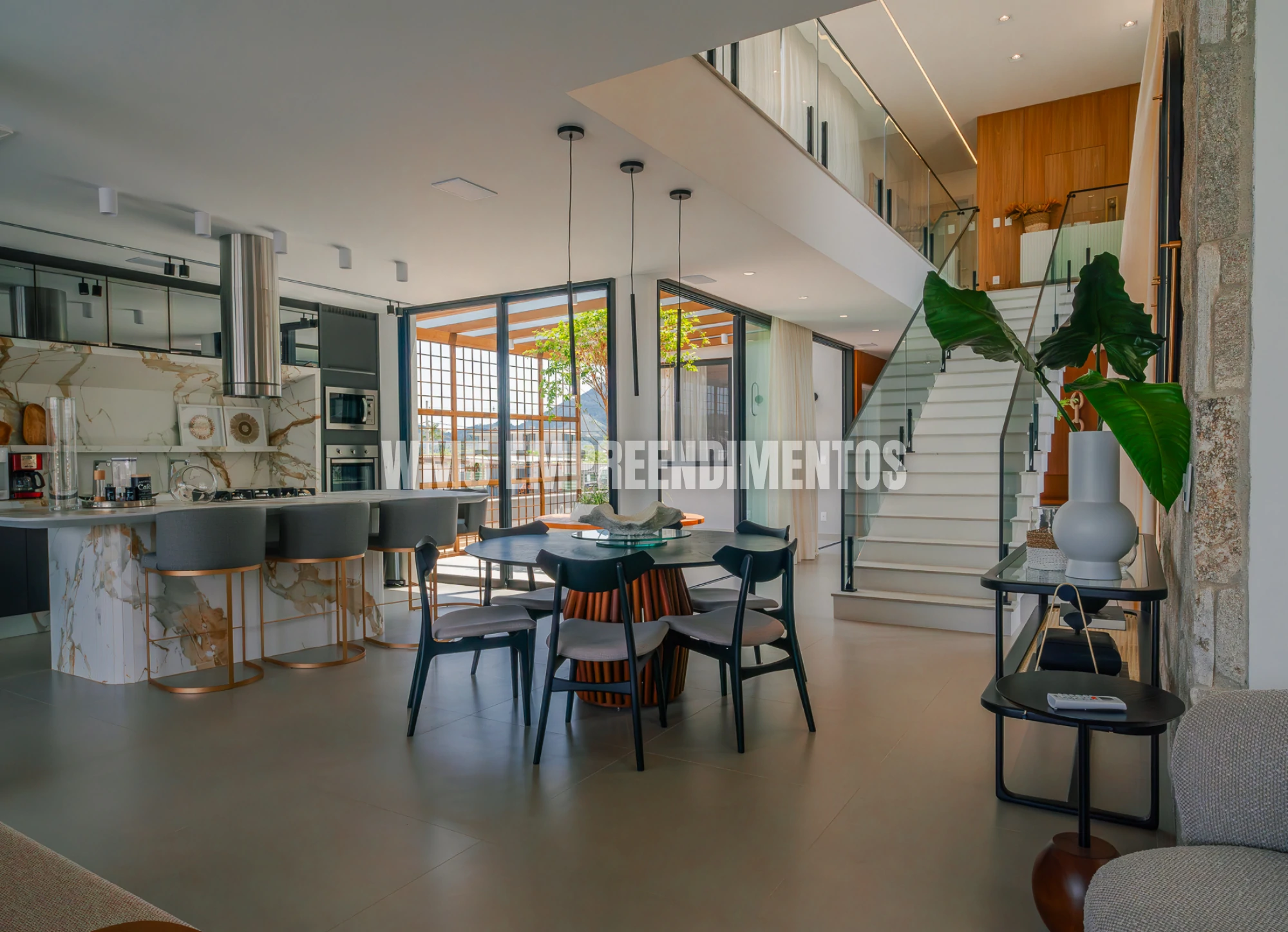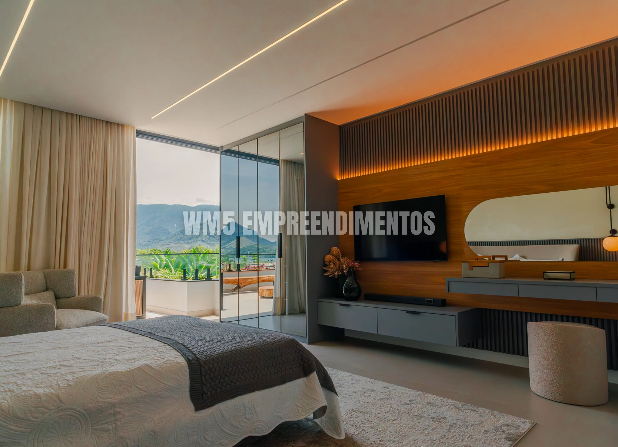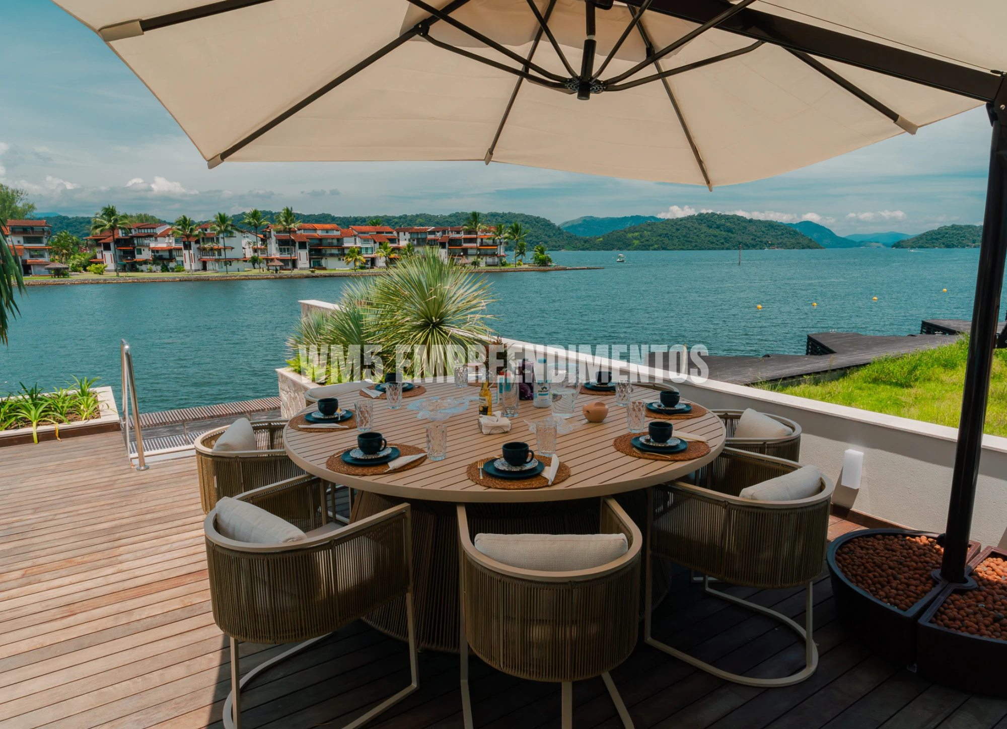 Apresentamos uma nova e contemporânea residência. Esta casa de alto padrão, com 883 m², foi concebida para proprietários de grandes embarcações, combinando o melhor do conforto e do design com o diferencial de uma embarcação de 65 pés atracada diretamente em sua porta. A residência oferece uma experiência de vida à beira-mar sem precedentes, onde luxo e praticidade coexistem. Cuidadosamente projetada, possui 5 suítes (4 no andar superior com varanda privativa e 1 suíte acessível no térreo). O projeto de conceito aberto destaca a sala de estar, que emoldura a vista para o canal e o mar de Angra, integrando-se ao espaço gourmet. A área externa conta com piscina com raia, hidromassagem e sauna, com transição suave para o deck e a garagem náutica. O entretenimento é garantido com um bar espetacular e uma sala de jogos completa. Inserida no exclusivo Reserva das Aroeiras, a propriedade se beneficia da segurança de ponta, heliponto homologado e um clube completo com academia, quadras e piscinas, garantindo uma vida de lazer e exclusividade.
