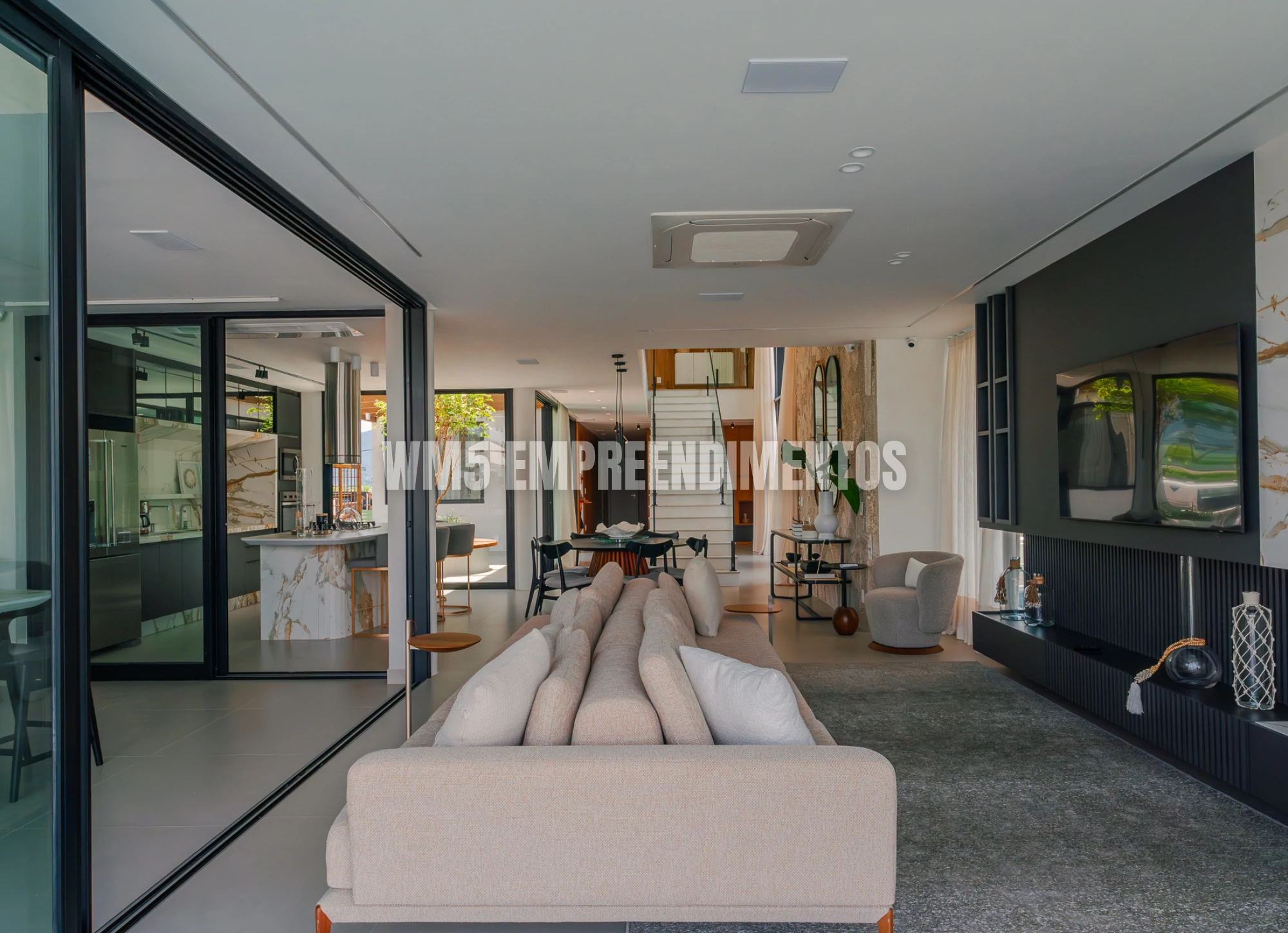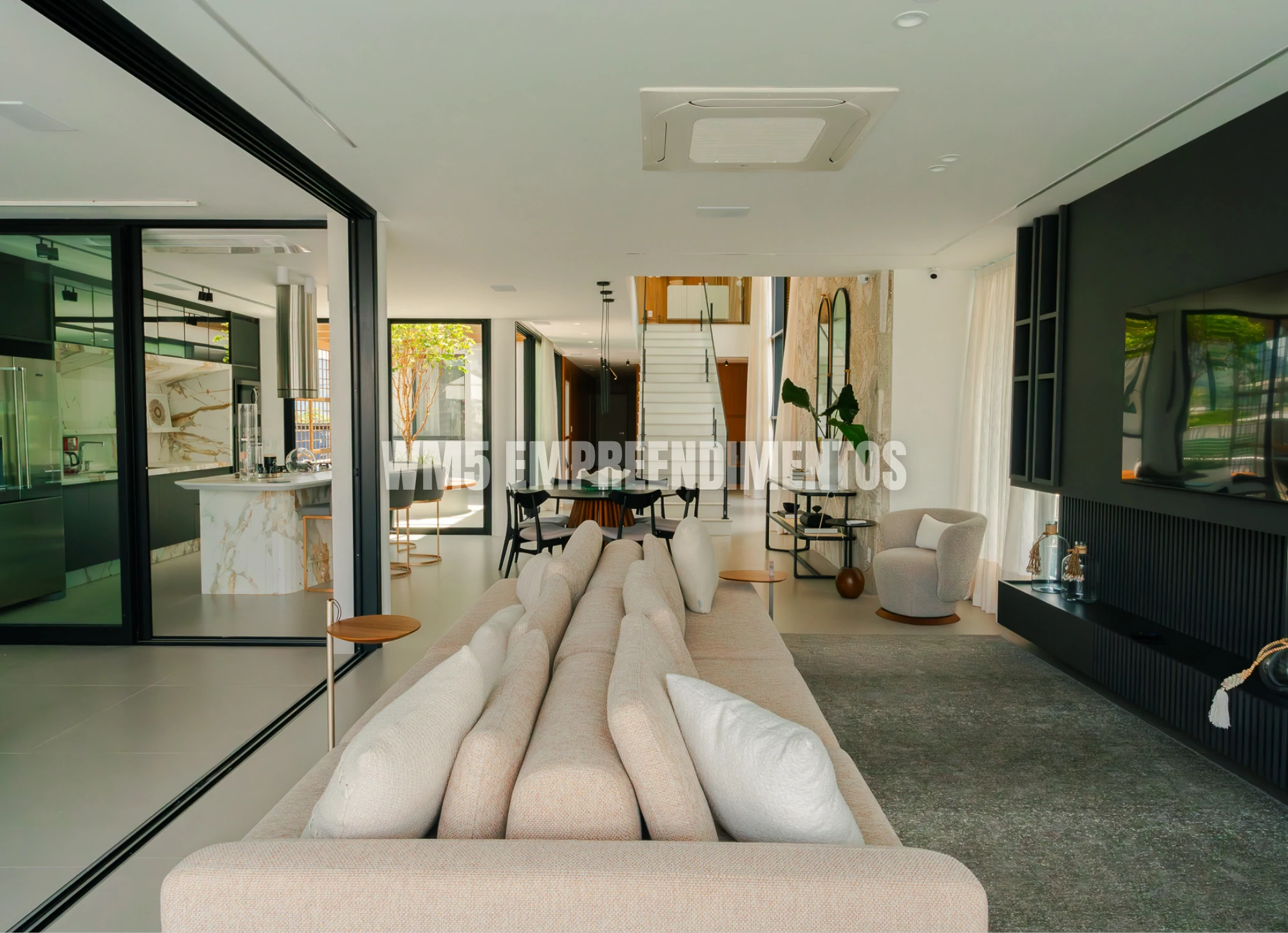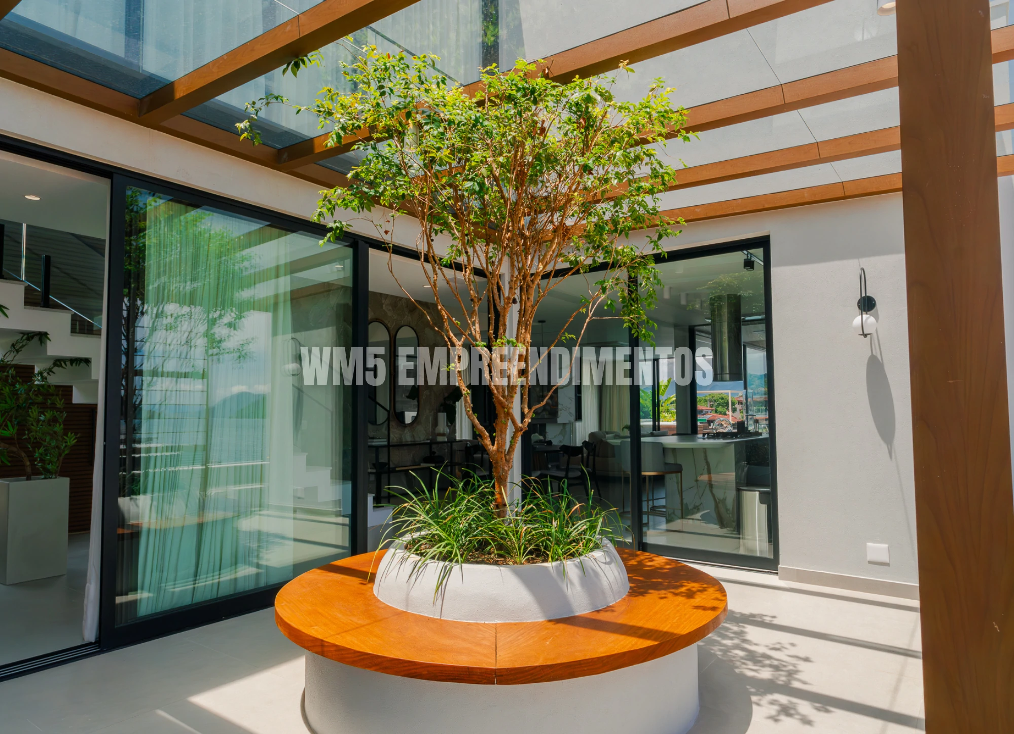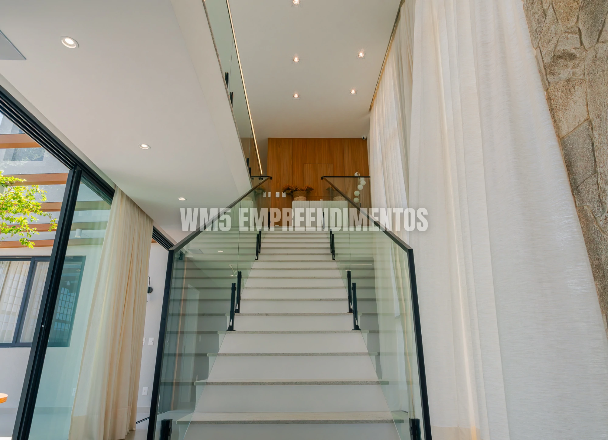 Apresentamos uma nova e contemporânea residência. Esta casa de alto padrão, com 883 m², foi concebida para proprietários de grandes embarcações, combinando o melhor do conforto e do design com o diferencial de uma embarcação de 65 pés atracada diretamente em sua porta. A residência oferece uma experiência de vida à beira-mar sem precedentes, onde luxo e praticidade coexistem. Cuidadosamente projetada, possui 5 suítes (4 no andar superior com varanda privativa e 1 suíte acessível no térreo). O projeto de conceito aberto destaca a sala de estar, que emoldura a vista para o canal e o mar de Angra, integrando-se ao espaço gourmet. A área externa conta com piscina com raia, hidromassagem e sauna, com transição suave para o deck e a garagem náutica. O entretenimento é garantido com um bar espetacular e uma sala de jogos completa. Inserida no exclusivo Reserva das Aroeiras, a propriedade se beneficia da segurança de ponta, heliponto homologado e um clube completo com academia, quadras e piscinas, garantindo uma vida de lazer e exclusividade.