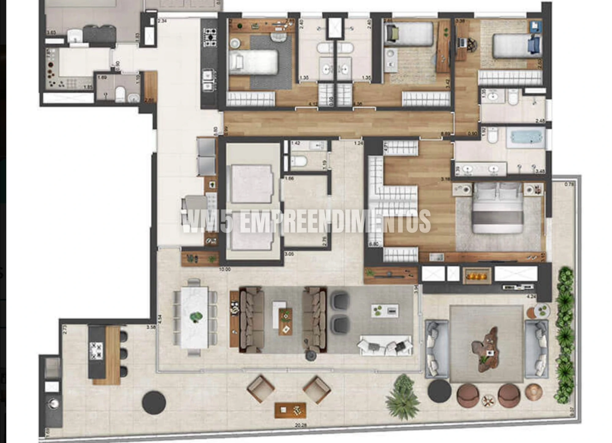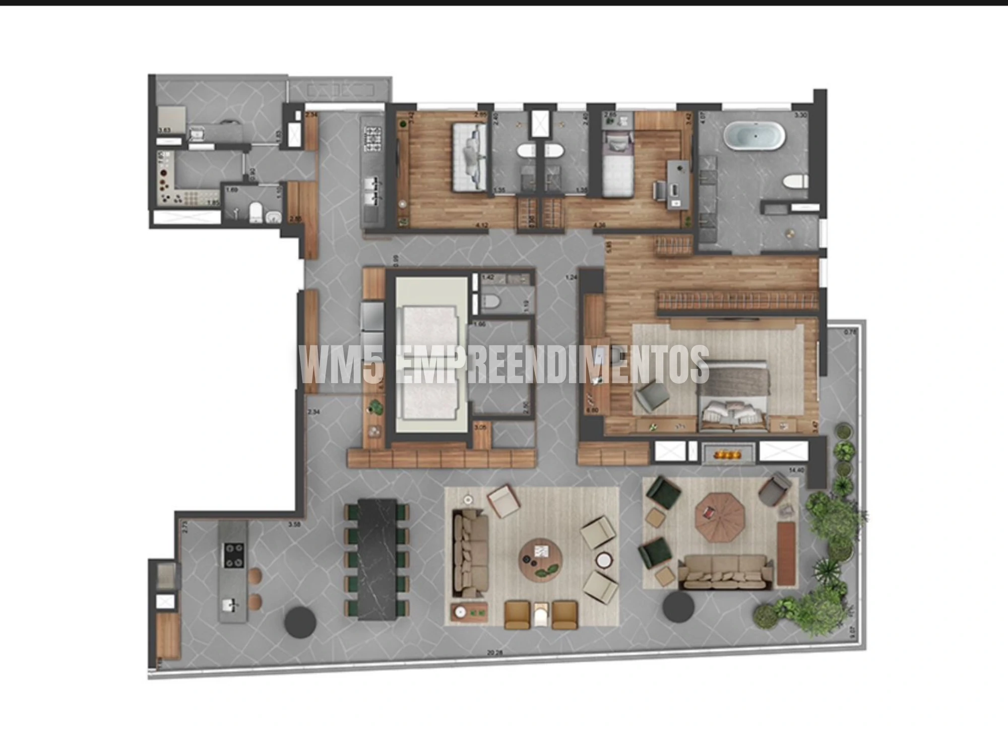 Com 285 m² privativos, a residência é um verdadeiro refúgio urbano. O projeto conta com 3 Suítes amplas, com a versatilidade de reversão para a planta original de 4 suítes, adaptando-se perfeitamente às suas necessidades. O living é grandioso, com ambientes integrados e iluminados, proporcionando uma vista singular da cidade.