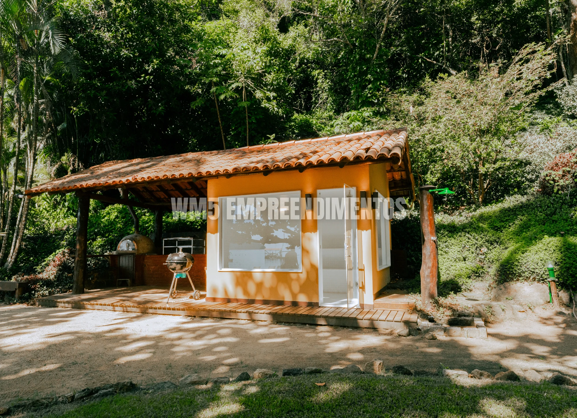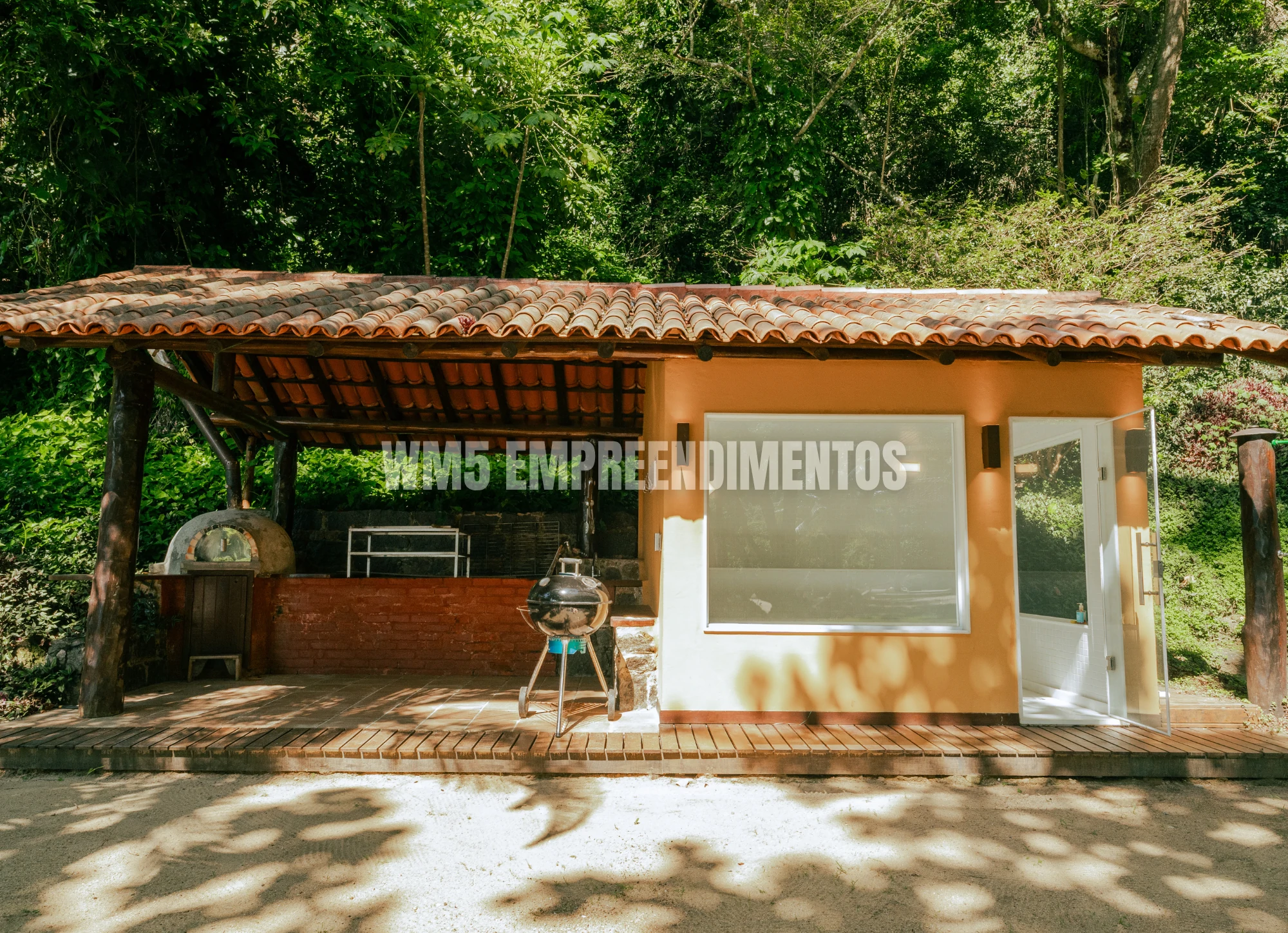 O lazer e a contemplação são elevados a outro nível: em frente à casa, um caramanchão oferece o cenário perfeito para apreciar a brisa e o pôr do sol. A área de lazer completa dispõe de forno de pizza, churrasqueira, sauna e redes.