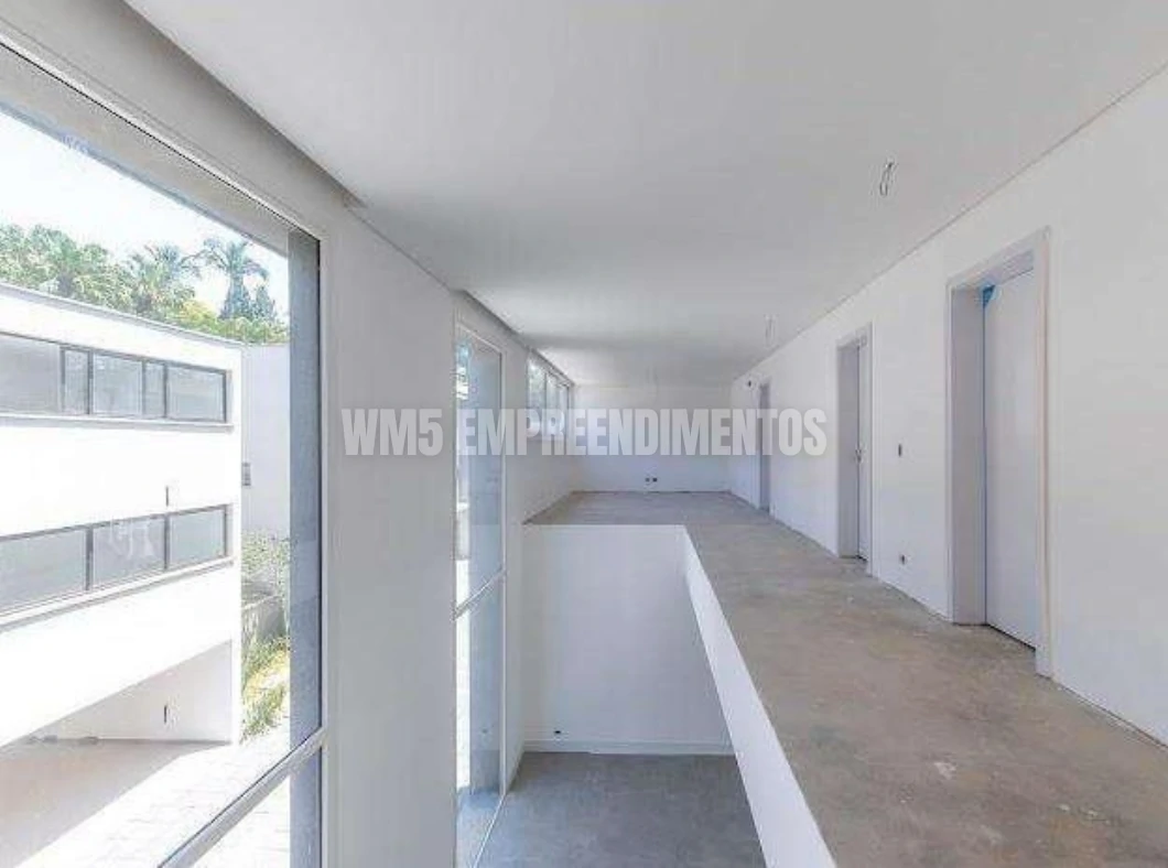 O pavimento superior abriga 4 suítes amplas, todas com acabamentos de alta qualidade, enquanto a área social, marcada pelo pé-direito duplo e esquadrias generosas, convida a luz natural a preencher cada espaço.
